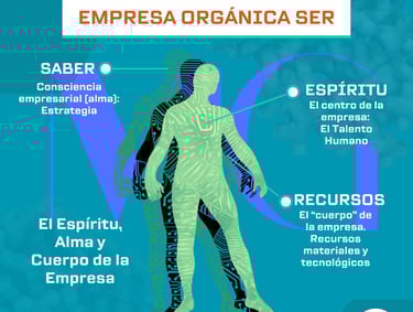 A través del ESPÍRITU de su empresa (talento humano), se establece el SABER (estrategia) necesario para el adecuado uso de los RECURSOS, que hacen de su empresa un SER pensante que genera la sinergia necesaria para el desarrollo económico sostenible.